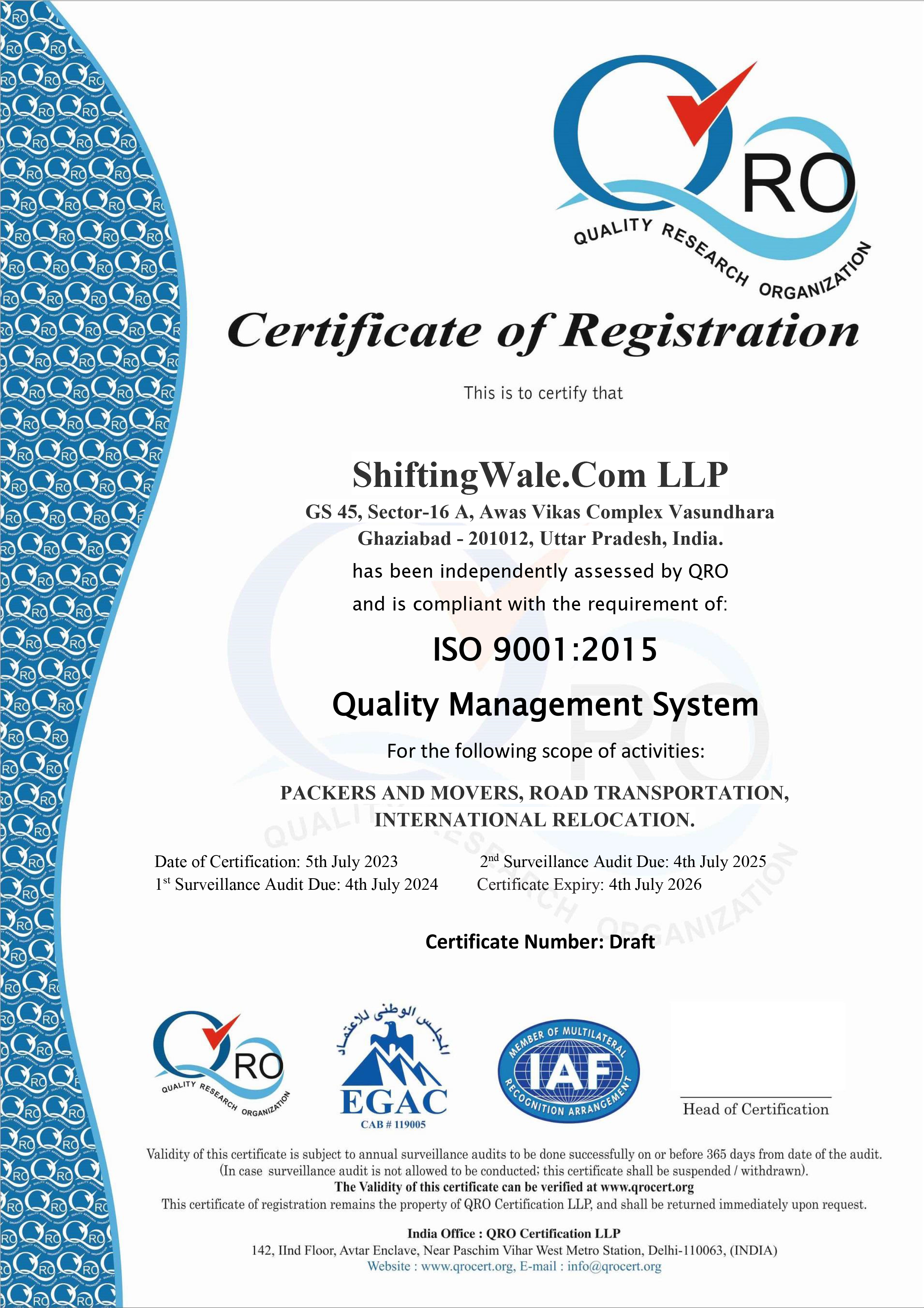 Dedicated Staff:- You will get a dedicated moving and packing manager to assist you! Above all, your logistics experience throughout would be a breeze - that’s ShiftingWale